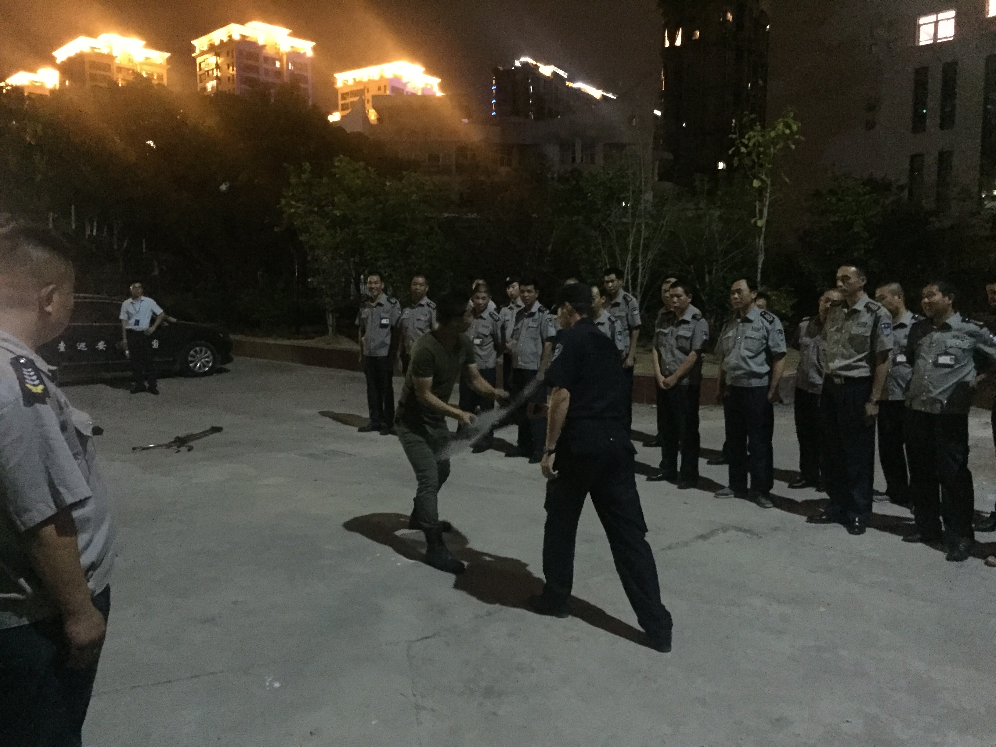 會(huì)后,全部保安員同志在操場(chǎng)上進(jìn)行了隊(duì)列會(huì)操,同時(shí)又加強(qiáng)了警棍術(shù)、盾牌、鋼叉的學(xué)習(xí)。